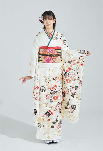 1:振袖 2:袋帯 3:長襦袢 4:ショール 5:重ね衿 6:帯揚 7:帯〆 8:バッグ 9:装履 10:髪飾り