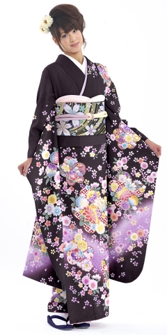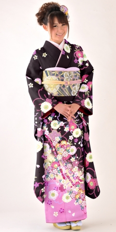 1.振袖2.羽毛ショール 3.袋帯 4.帯上げ5.帯締め